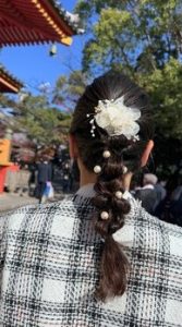 髪の毛はお団子にピンクのお花がいいとリクエストもあり